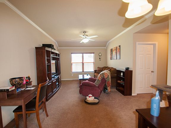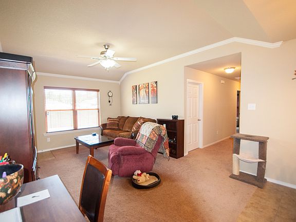 Great starter home. Sweet 3 bedroom 2 bath with 2 car garage. Open floorplan. Double sinks in the master bath, tray ceiling in the master bedroom. Great neighborhood. Partially fenced. Backs up to green space.