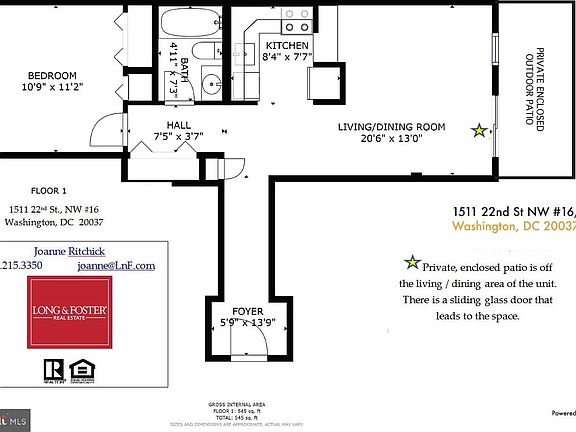 Situated on the first floor and in the back of the building you will find this rare and unique 1BR/1BA- with a private enclosed patio. You don"t face, or see the street. The patio is perfect for your morning coffee, dining al fresco, or telecommuting!! Hardwood floors in living room / dining area. Open floor plan. (See 3D Virtual Tour - ) Washer / dryer in unit. Fabulous location! Six minute walk to Dupont Circle metro - according to Google Maps, Rock Creek Park Trail, Embassy Row, Rose Park, Georgetown, Dupont Circle.