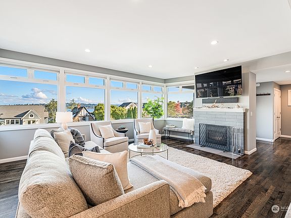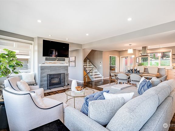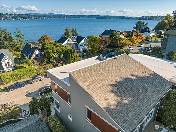 Hello sunshine! Soak up the sunrises reflecting off Lk WA in this east-facing contemporary home. Enjoy lake, Mercer Island, Mt Rainier, dwtn Bellevue & the Cascade views in the distance. Built in 2015 with an open floor plan on the main level, affording lake views and easy living. Upper level with central atrium, 3 beds/2 baths + laundry room. Ample primary Suite with private view deck, incredible bath and 2 walk-in closets. Den (or 4th bedroom) on the main level, plus 1/2 bath and fireplace. Patio just off the kitchen-great for outdoor enjoyment. Lower level family room, ¾ bath, extra finished room (gym?) plus additional storage. Excellent location for access to dwtn, the Eastside, Leschi/Mt. Baker beaches, restaurants, etc. Welcome home!