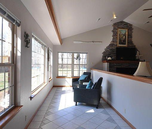 4.99 acre Beautiful ranch home with 5 Br,3.5 BA. many architectural Features. Windows galore gives views of wooded acreage thru out home Main level has large living rm. with cathedral ceiling,formal dining rm, gourmet galley kitchen, 2 bdrm. on main ,1 full bath, 1 half bath, beautiful Florida style family room -lined with windows,wood burning fireplace,serving window to kitchen makes this a year round relaxing room, window lined study/office. Newly designed lower level could be a separate living area has family rm.,2bms,large bath and laundry,large family/ full kitchen rm. with gas fireplace.Tons of storage.Concrete hall storm room to well room. City water but private well on location.(needs new pump )