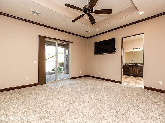This beautiful 2195 sf 3 bedroom, 2.5 bath home located in Royal Vista has all the bells and whistles and looks brand new! As you enter the home you can see the high quality construction starting with 2 x 6 exterior walls. The interior of the home is in warm earth tone colors. Upgraded porcelain tile flooring is throughout most of the home with carpeting in the bedrooms. The dark walnut knotty alder cabinets are all custom made and soft close and complimented with granite counter tops. Upgraded Kenmore appliances in the kitchen. There is an extra large walk in hidden pantry, plantation shutters, central vacuum system, water softener....tons of upgrades. Not to mention the oversized 3 car garage. Come see this beauty before it's gone!!