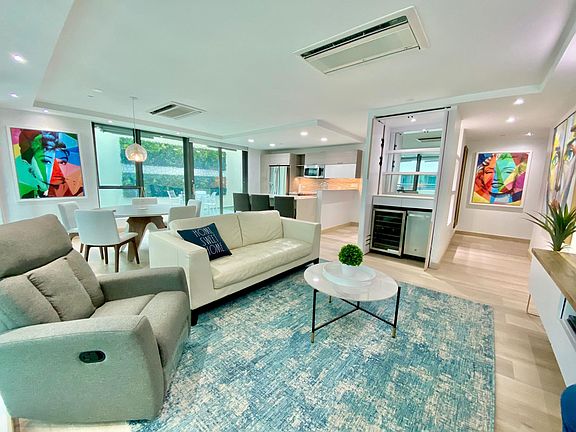 Two (2) bedroom, two (2) bathroom condo apartment at Tower 900 (next to La Carreta and steps from Pueblo Supermarket) with a one-of-a-kind patio. Right in the heart of Santurce, Ciudadela is a modern apartment complex with supermarket, gym, restaurants and medical/professional offices mere steps away from each apartment tower. Everything else is a short walk/drive away. 24hr security. This unit is fully furnished and includes two parking spaces. HOA payment is included with the rent. HOA payment included in rent.
