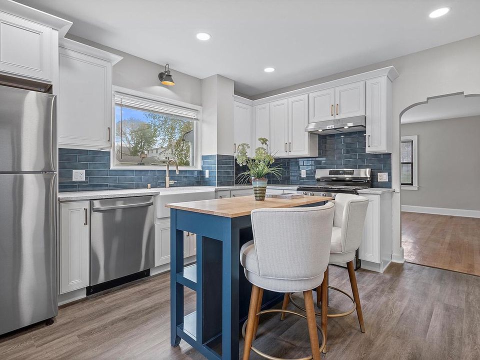 This tastefully updated residence is conveniently situated near parks, trails, schools, and minutes from Lake Michigan. The stunning kitchen features high-quality, semi-custom cabinets, SS appliances, a luxurious faucet, a farm-style sink, and quartz countertops. The classic mid-century design with modern touches in the BA is sure to impress. All-new lighting fixtures boast elegant touches. A beautiful combination of new and natural hardwood flooring throughout. Prepare to host summer gatherings in the spacious backyard or enjoy a quiet morning with your morning beverage on the porch. Don't wait too long to tour this lovely home!