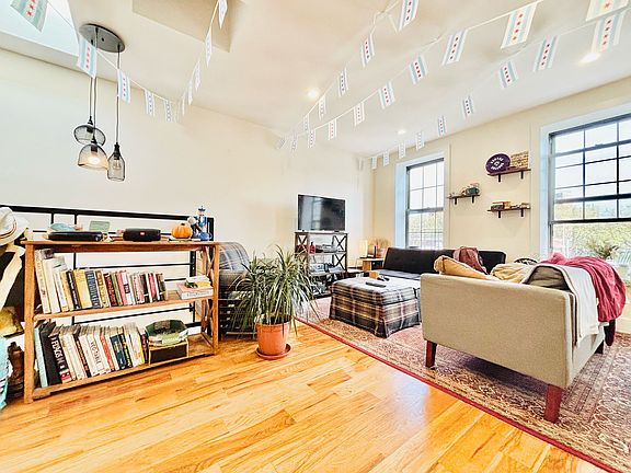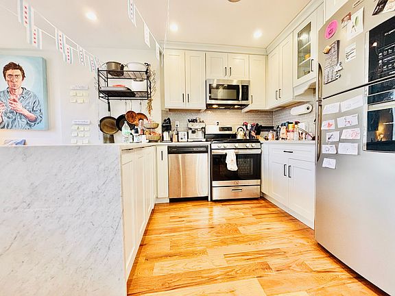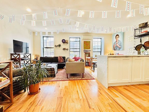 Sunny apartment with spacious common area and kitchen -Washer and dryer in-unit. -King sized bedrooms with closets. -Kitchen peninsula with breakfast bar and additional storage space. -Stone countertops -Stainless steel appliances, including a dishwasher. -Skylight in the living room. -Plenty of restaurants in the Crown Heights area to choose from. -Two flights of stairs up. Guarantors and The Guarantors are accepted