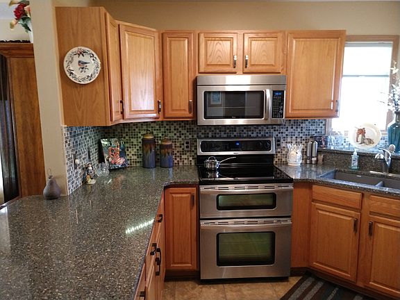 Zero Entry condo. 1 car garage, opened concept, kitchen has granite countertops with backsplash and under-counter lighting, stainless steel appliances. Washer and dryer included. Tiled walk-in shower.. Vaulted ceiling in living room.sliding glass doors out to Nice patio Walking path behind the condos. Very quiet neighborhood.heating bill 25 dollars budget.