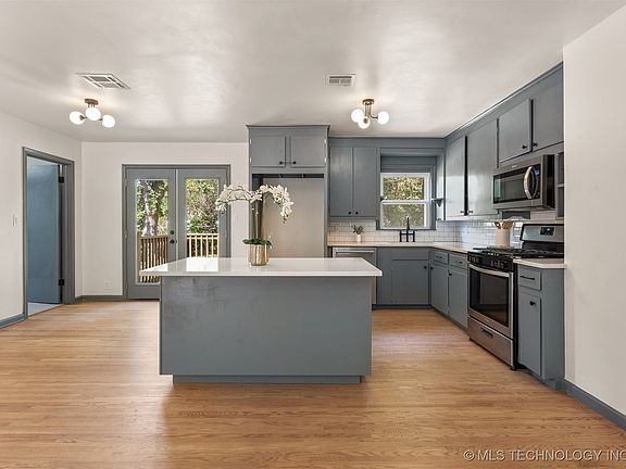 Adorable and completely remodeled midtown home! The open living space features gorgeous, refinished, original hardwood floors that flow into the beautiful kitchen. The kitchen island is the perfect centerpiece for entertaining and cooking, allowing for conversational seating and a wonderful place to prep! With stainless steel appliances, a gas range and quartz countertops meals will be a delight! The remodeled bathroom has lovely new tile throughout as well as a new vanity, fixtures and toilet. Wonderful new French doors draw you into the spacious backyard, with a brand-new deck and large patio, ideal for hosting friends and family. Other amazing updates include a New roof summer of 2024, all New windows throughout, all New light fixtures, New paint on the interior and exterior, and New electrical panel. Close to Brookside, Cherry Street, Utica Square, Downtown Tulsa and a quick commute to highway access, getting you anywhere in the Tulsa area quickly! Agent related to Seller.