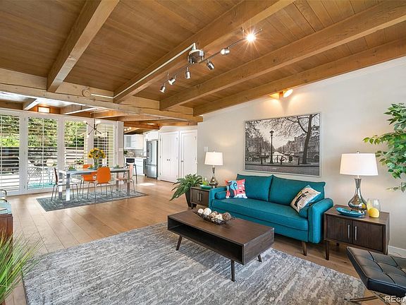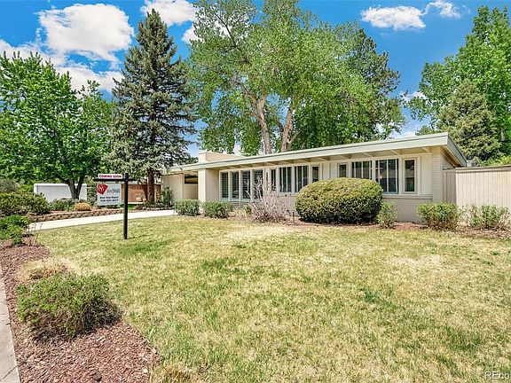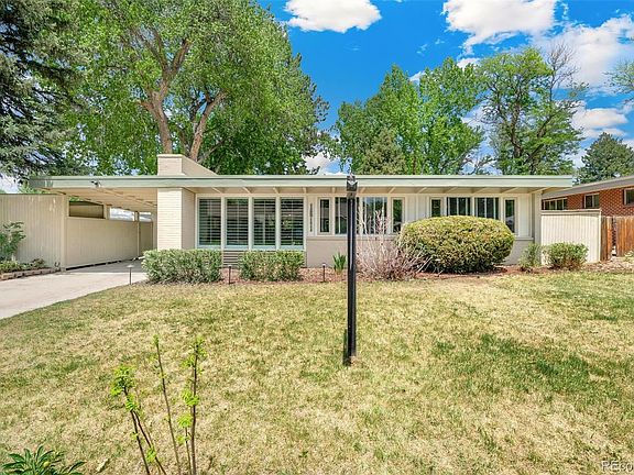 Mid-century modern home in Arapahoe Acres, the 1st post WWII neighborhood to receive a historic designation. The Walker House, built in 1952, has many of the elements so sought after in these homes. Featuring an open floor plan, floor to ceiling glass, natural wood beamed ceiling, a rare butterfly roof design, large windows in every room, four bedrooms and two baths that include a master suite, private fenced backyard (with 220 service for a hot tub), a gas fireplace in living room, and a u-shaped flagstone courtyard accessed by the dining, kitchen, and master bedroom suite. Terrific inside/outside connection with natural light in every room. Mid-century modern living at its best. Located near the University of Denver, this home offers the unique opportunity to live in one of the most sought after MCM neighborhoods in the Denver Metro region. Several books and articles have been written about the significance of the neighborhood and its homes. New furnaces and central a/c in 2017.
