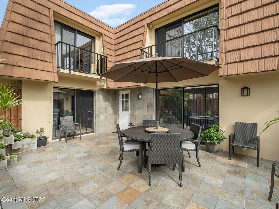 Welcome to Vista Oaks West! Complete with an open layout downstairs, a true dedicated living space, and the upstairs separates to it's own quiet getaway with 2 owners suites. The open living room and kitchen space with custom cabinets, is perfect for lounging and entertaining. Spacious 1/2 bath and laundry room with washer & dryer hookups downstairs. The beautiful private courtyard with custom tile, can be seen from 4 sets of sliders (2 with balconies!) When hurricane season comes, no worries! Hurricane fabric ready & underground utilities make these the perfect bunkers. Tucked away in a park-like setting, yet close to shopping, restaurants, parks, beaches and high tech job employment sites. Recently installed new water softener and filtration system and instant hot water heater. Low HOA fee includes water, sewer, trash, landscaping & high speed internet/cable. Plenty of parking with reserved spots and room for plenty of guests.