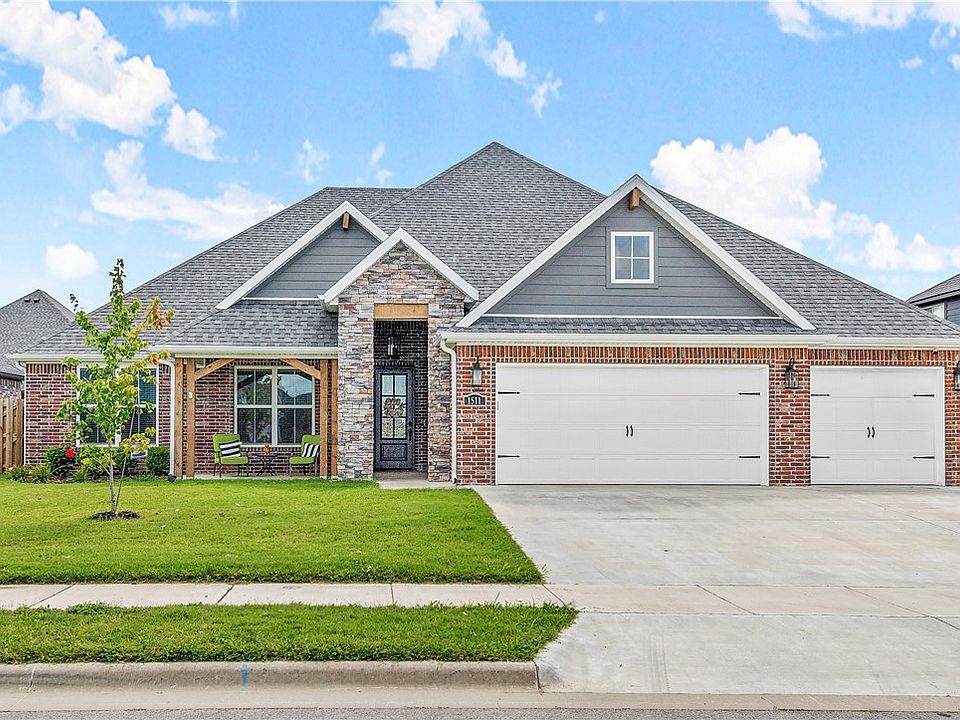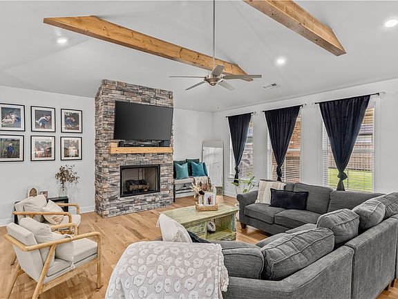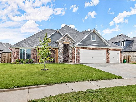 Like-new 2020 build in the highly desired Diamond Estates! 3 beds 2.5 baths PLUS OFFICE! Beautiful wood beams on vaulted ceiling featuring an open floorplan and tons of natural light! Soft close hinges and drawers, granite counters, LED lighting, 3 car garage, fireplace on the back patio, master closet leads to utility room, professional landscaping, right across the street from the community pool and clubhouse, basketball court, walking path, and a fishing pond! Located within walking distance so Bentonville High School West!