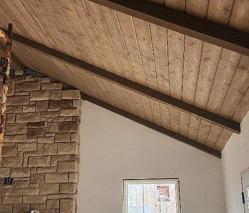 Split Ranch floor plan, with cathedral ceilings, and has kitchen island with quartz countertops.