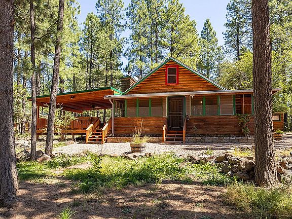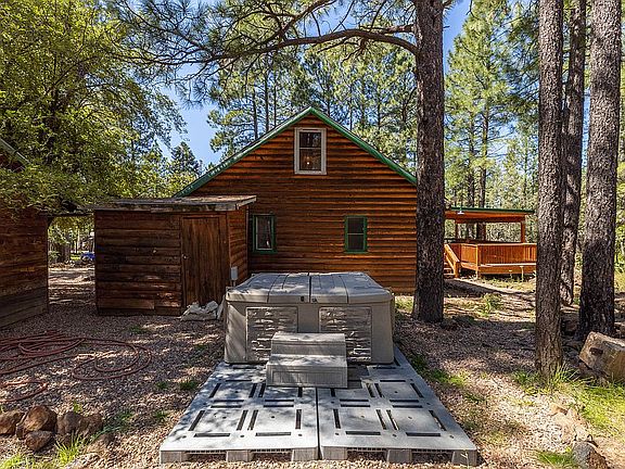 3 bed 1.5 bath. Has a 500 sq ft deck to enjoy the nice Pinetop weather. Also has a storage building and two other outbuildings and it is on its on well.