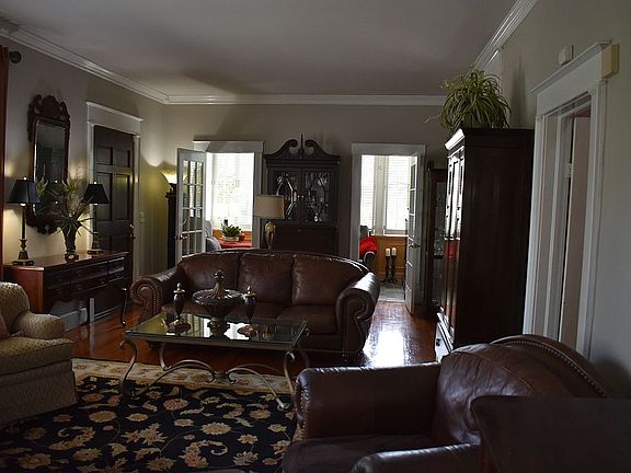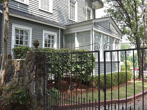 Stunning historic home in Midtown, 4 bedrooms, 2.5 bathrooms, 2791 Sq. Ft, 11ft. ceilings, crown molding throughout, and replica backyard playhouse. The main floor has a living room and beautiful original hardwood floors with gas fireplace with above TV mount, sunroom with slate flooring with double french doors and plantation shutters, dining room with 11 ft pocket doors, kitchen updated with brick walls, extra build in cabinets and wine refrigerator ,½ bath located on main floor for guest. Beautiful staircase with loads of natural light. Second floor with primary bedroom with two closets and ensuite large bathroom with jetted tub. Second bedroom with large walk in closet with wooden shelving unit. Third bedroom with walk in closet with shelving unit. Hallway bathroom with large walk in shower. Fourth bedroom is 600 sq ft with built in bookshelf and walk in closet with new berber carpet. A rare find with generous closet/storage space for a historic home. Outside features include a huge wooden deck newly painted with stone driveway gates, fully fenced yard, mature landscaping and wonderful backyard for entertaining. Detached playhouse which can remain. House, deck, and playhouse with preventive Terminix on guard protection system installed. Walking distance to Columbus High school and Lakebottom Park. Serious inquiries with loan pre-approval. Viewing by appointment only. Realtors welcome!