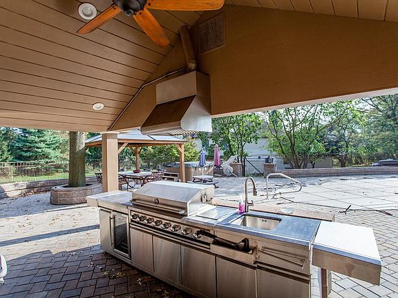 - Fireplace features: wood stove
