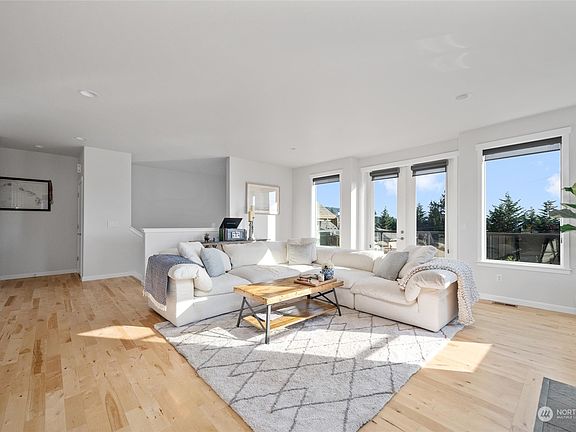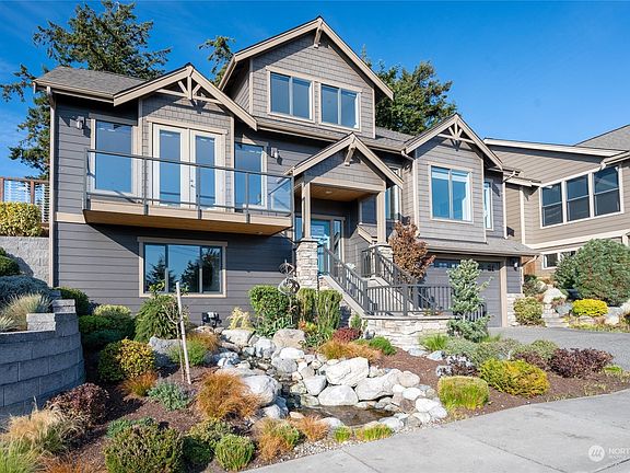 This stunning 3 story home is perfectly situated near the Skyline community with tranquil views of Burrows Bay and beyond! Main-level living features large primary suite with views, office/nursery, dedicated laundry room with sink and large living space open to an entertainers kitchen. French doors lead to a finished deck complete with outdoor gas fireplace for year-round enjoyment. Brand new steel railings lead upstairs to large bonus room and two spacious bedrooms. Lower-level offers private guest suite with full bath and access to a 2 car garage. Fully fenced in yard with low maintenance landscaping is irrigated. Recent upgrades: Brand new carpet throughout home, refinished wood floors, all new interior paint, trim, and kitchen cabinets.