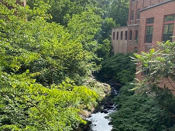 Rarely available Penthouse Loft with views of conservation land & sounds of nearby waterfalls. Beautifully presented studio open floor plan with large bedroom area separated by a double-sided fireplace. Exposed brick walls with soaring industrial-size windows bring in the sunlight. Modern kitchen with stainless steel appliances, granite countertops & island with wine fridge. Walk on the bamboo floor down to the sitting/dining area or relax in the whirlpool bath with overhead shower & gorgeous slate tile. Additionally, the loft has sprinklers, deeded parking, & storage minutes from your main door. Enjoy the nearby waterfalls, a short drive to Union Station, 90/190/290, Polar Park & Worcester Airport with direct flights to NY, FL, PA & MI. Worcester has so much to offer with top-notch hospitals at UMass & St Vincent’s, & cultural venues with the Hanover Theatre & Museums. One of a kind loft with hiking and walking trails, bring your dog & enjoy! SHOWINGS START AT OPEN HOUSE SUN 2-4pm