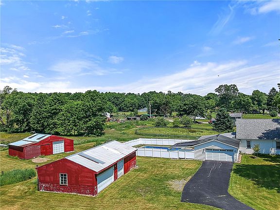 This charming two bedroom and two bath farmhouse home comes with 72 picturesque acres that also includes a pond! It's privately situated in Pulaski(Frizzleburg), with low taxes and in the Wilmington Area School District. The home has been added on to over the years, and has a large gathering room that overlooks the large underground pool surrounded by a white vinyl privacy fence. The laundry is conveniently located on the main level, and it also features a two car stall garage. There's no shortage of storage with this property as it also has large barns for tractors, side by sides, or quads.