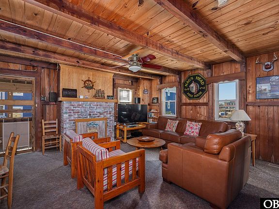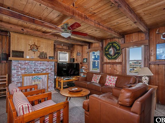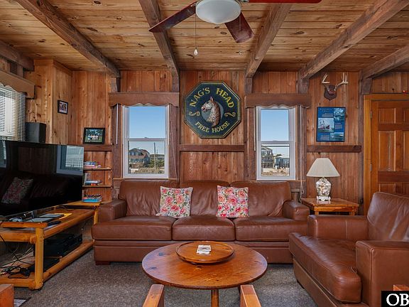 A rare oceanfront opportunity in Kill Devil Hills, this vintage home sits on an expansive 42,000-square-foot lot with a well-established dune line. Built between 1938 and 1940, the property exudes rustic charm and nostalgia for the Outer Banks of decades past. While currently used as a vacation rental with modest income, its true value lies in the land (100 feet wide), offering endless possibilities for redevelopment.  Steeped in history, the main living areas of “Sea Chanty” are wrapped in Juniper paneling with exposed beams, preserving the character of a bygone era. The layout reflects its time, with a cozy oceanfront bedroom and private bath tucked behind the kitchen. The central family room opens onto an expansive covered deck and screened porch, both offering sweeping ocean views to the east and south. Upstairs, two bedrooms and a half bath enjoy stunning ocean vistas, with one bedroom providing access to a spacious sundeck. On the ground level, a separate updated bedroom with a full bath and adjacent laundry room adds convenience and privacy. A detached outbuilding remains on the property, offering additional space for storage or potential use. Located in the heart of Kill Devil Hills, this oceanfront retreat is just moments from restaurants, attractions, and shopping. Whether restoring its vintage charm or envisioning a new coastal estate, this is a rare chance to secure a premier piece of oceanfront land in a sought-after location.  Property is listed as lot 16 & 17, and could be subdivided into two (2) lots as per the town of KDH.