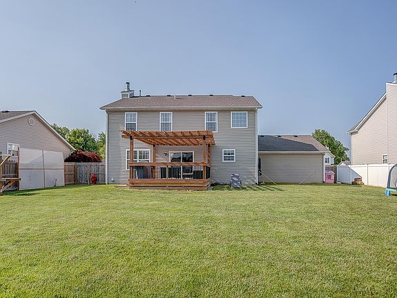 Fabulous 4 bed 3 ½ bath two-story home nestled in Keck Ridge Subdivision. Spacious large lot with a fenced in back yard and recently refreshed outdoor space with a refinished deck and newly added pergola (summer 2022). Main floor features beautiful Luxury Plank Vinyl floors throughout. An inviting sitting room and dining room surround the entry way. Open concept living room (with wood burning fireplace) and eat-in kitchen allow for ample space to entertain. Granite countertops, stainless steel appliances, center island and panty all elevate the kitchen experience. Main floor laundry with entry way from the garage and adorable half bath complete the main floor. All upstairs bedrooms, a primary en suite with walk in closet and oversized dual vanity bathroom includes a generous sized soaking tub. An open finished lower level (with a full bath) allows for many possible opportunities in this flexible living area. Ring doorbell and backyard camera with spotlight are included.