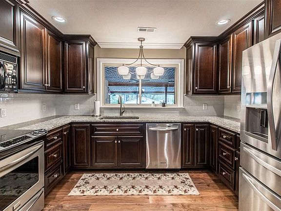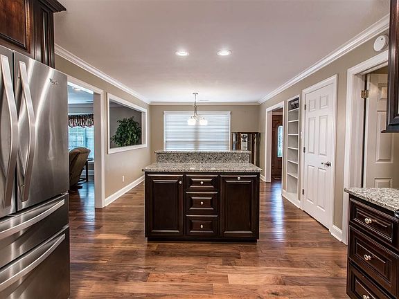 - KITCHEN DESC: Eat In Kitchen, Crown Mold, Granite Countertop, Wood Floor, Kitchen Island