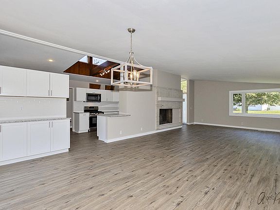 Mid Century Meets Modern! Located in the Heart of McHenry, this stylish home has been completely updated yet has the charm that goes along with the era in which it was built. This Open Concept Ranch with a Full Partially Finished Basement will simply delight you. Large Living Room flows into the Dining Room which opens to the Updated Kitchen with White Cabinets, Granite Counters and Stainless Steel Appliances. Cozy Fireplace for those cool nights. 3 Bedrooms with great closets and storage nooks. Updated Hall Bathroom. 3 Season Room off the Kitchen leads to the garage with access door to the large yard. Full Basement is Partially Finished with an Updated Bathroom and Rec Room. Huge Storage Room with Workshop Area and Washer/Dryer. This home features ALL NEW roof, siding, windows, laminate flooring, updated kitchen and bathrooms, lighting fixtures and landscaping. Newer water heater and electric upgraded in 2011. Nice corner lot with side apron parking! Just a block to the Fox River and Veteran's Park. Close to shopping and the McHenry Riverwalk with it's fabulous restaurants!