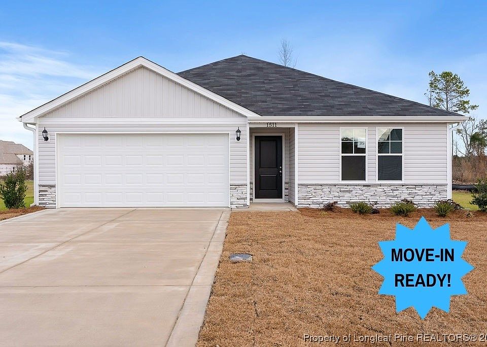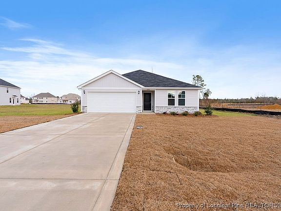 Move in ready! Blinds and fridge included with accepted offer! Closing cost concessions available with preferred lender. Ben Stout Construction presents The Key Series! Designed for Comfort Living! The Sunset offers the convenience of single floor living! Talk about an open floor plan to ease your dining and entertaining experience! Enjoy your beautiful en-suite bathroom with double vanity, a walk-in shower, and spacious walk-in closet! Welcome to Tarrant Estates- a completely new neighborhood with close proximity to the Fayetteville Airport, Cape Fear hospital, and Fort Liberty!
