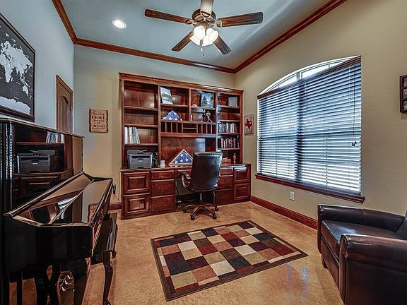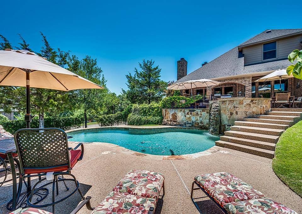 THIS gorgeous property has it all! Meticulously maintained home with stunning backyard paradise! Beautiful kitchen and great room in the heart of the home. Lots of entertaining space with wrap around eating bar, breakfast area and formal dining room. Unique design offers privacy to every bedroom! Owner's suite is downstairs, as well as a guest suite with private bath. The study is also on the first floor, which could also be used as a 5th bedroom. Upstairs there are 2 separated bedrooms and a full bath. Large game room upstairs has endless possibilities! Complete outdoor entertainment area includes kitchen with a sink, grill and mini-fridge; fabulous living area with fireplace, mounted TV outdoor sound system. Additional sitting area located on the balcony overlooking the pool below. Also on the upper level is an outdoor spa with a fountain feature. Walk down the steps to a play pool with waterfall feature! Extended driveway with wrought iron double gate. So much to love here!