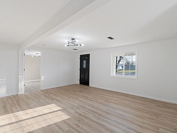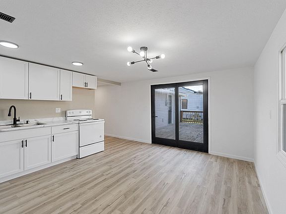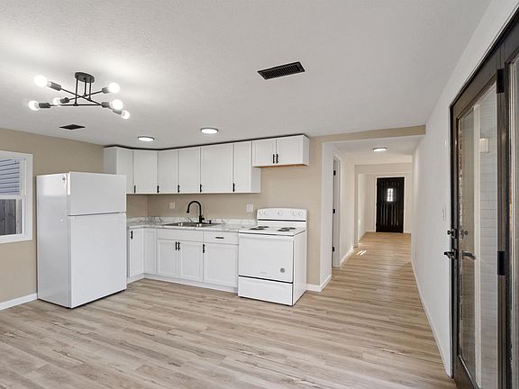 Step inside this newly remodeled 1232 sq ft home, ideally located close to everything you need! Every inch of this property has been beautifully updated, offering a modern and inviting feel the moment you walk through the door. You're greeted by a spacious, light-filled living room that serves as the heart of the home. To the right, you'll find the owner's suite—a comfortable bedroom with an attached full bathroom. On the opposite side of the living room are two additional bedrooms and a dedicated laundry room for added convenience. Down the hallway, the updated kitchen features plenty of space for a dining table and includes a refrigerator and stove/oven combo. One of the standout features is the oversized, detached two-car garage, perfect for storage or a workshop. Enjoy outdoor living on the back deck—this home truly has it all!