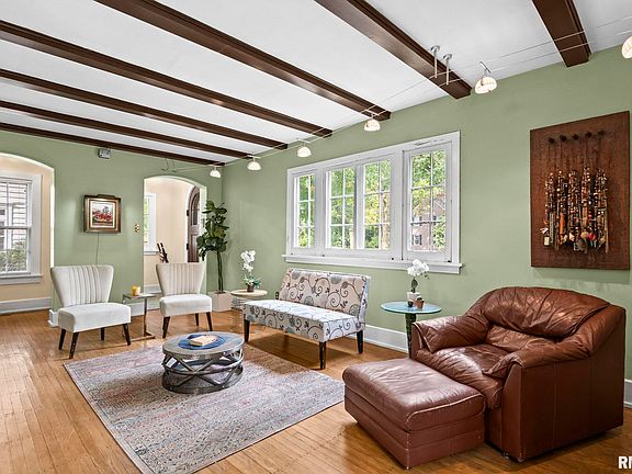 Charming All-Brick Two-Story Near Washington Park! This fantastic home offers exceptional curb appeal with its beautifully landscaped yard and brick-laid sidewalks, making it a standout in the neighborhood. Step inside and be greeted by an abundance of natural light, exposed wood beams, and fireplace which creates a warm and inviting living room. The formal dining room features elegant French doors that open into a spacious family room and kitchen area—perfect for entertaining. The kitchen is a dream, boasting a large island, granite countertops, ample cabinet space, and a convenient breakfast bar. Double doors lead to a serene backyard, complete with a two-car detached garage. Upstairs, you'll find four generously sized bedrooms as well as an office. The primary suite includes a private full bath, while the guest bedrooms share their own full bathroom. A partial unfinished basement and additional attic space offer plenty of storage options. Don't miss the chance to make this beautiful home yours. Pre-Inspected for buyer peace of mind.