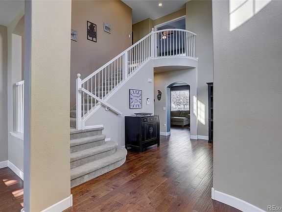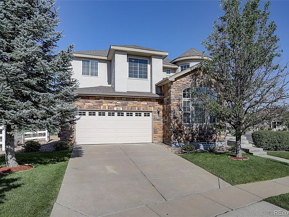 This gorgeous home is located close to all of the wonderful amenities that Murphy Creek has to offer, including the P-8 school just across the park. Walk to the pool, tennis courts, park and golf course clubhouse and restaurant. Dramatic turret style entry and vaulted ceilings give this home a grand and luxurious feel. Completely adaptable floorplan so you can use the two front rooms as an office, living room or dining room, depending upon your family's needs. Large kitchen with stainless appliances, maple cabinets and a gorgeous backsplash. Neutral paint throughout with handscraped wood floors on the main level. Four bedrooms and laundry room conveniently located on the upper level. Private, meticulously maintained backyard with lovely paver patio. Large unfinished basement too. Five minutes to Buckley Air Force Base, ten minutes to Southlands Mall and twenty minutes to DIA.