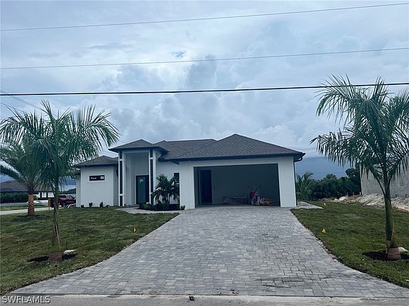 OWNER MOTIVATED!!!!!!!! BEAUTIFUL BRAND NEW CONSTRUCTION - Estimated Completion on 10/22 ! This 4 Bedroom, 3 Bath, 2 Car Garage home comes with all the Bells and Whistles. Home is 1, 983 sq ft under air with a total of 2, 733 sq ft with an oversized pool and located on a freshwater canal! Outdoor shower close to the pool and cozy outdoor kitchen with full size sink and plenty of counter space. The master bath offers a great shower with double sinks, The Kitchen has All Wood Cabinets, impact windows/doors, island w/the highest quality Quartz, Stainless Steel Appliances, and a huge Kitchen Island. This home has a Paver driveway, Paver pool deck, complete landscape package with sprinkler system. The interior specs are 12' Ceiling in living area, 8' door, Soffit lighting outside, Trey Ceilings in the living room, pendant lighting in the kitchen, pool bath and so much more. This home is located in the desirable SW section of Cape Coral, Along with a builder's warranty for one year from time of completion and 2-10 Home Buyers Warranty after that. Patio Fully Fenced. Photos are from a previous built , same layout/plans and finishing excluding the pool enclosure.