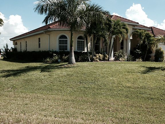 *STUNNING DESIGNED HOME* Stunning designed home on an oversized corner lot with gorgeous landscaping; beautiful variety of Palms with Royal Palms lining the brick paver driveway. When you enter through the double doors you are greeted by soaring coffer ceilings 20+ high with hidden surround lighting and possibility of surround sound. The wide open floor plan gives you direct views of the fresh water canal. Enjoy your Gourmet Kitchen with granite counters galore, custom Cherry Wood Cabinets, stainless steel appliances. Large laundry room with additional pantry. Tile through out, bedrooms have carpet. This fantastic home features 3 bedrooms plus Den/Office, formal dining room, 2 full baths. The Master Suite has tray ceiling, space for a sitting area. It has luxurious bath with Jacuzzi tub and large walk-in shower with 3 shower heads. His and her vanities. Large walk-in closet, high ceilings, unique ceilings, crown molding, 5" baseboards. This is a great home for those who love space and easy access to major roads, SW Florida International Airport, baseball stadiums, golfing, fishing, boating and dining and entertainment. You gotta see it to believe it.
