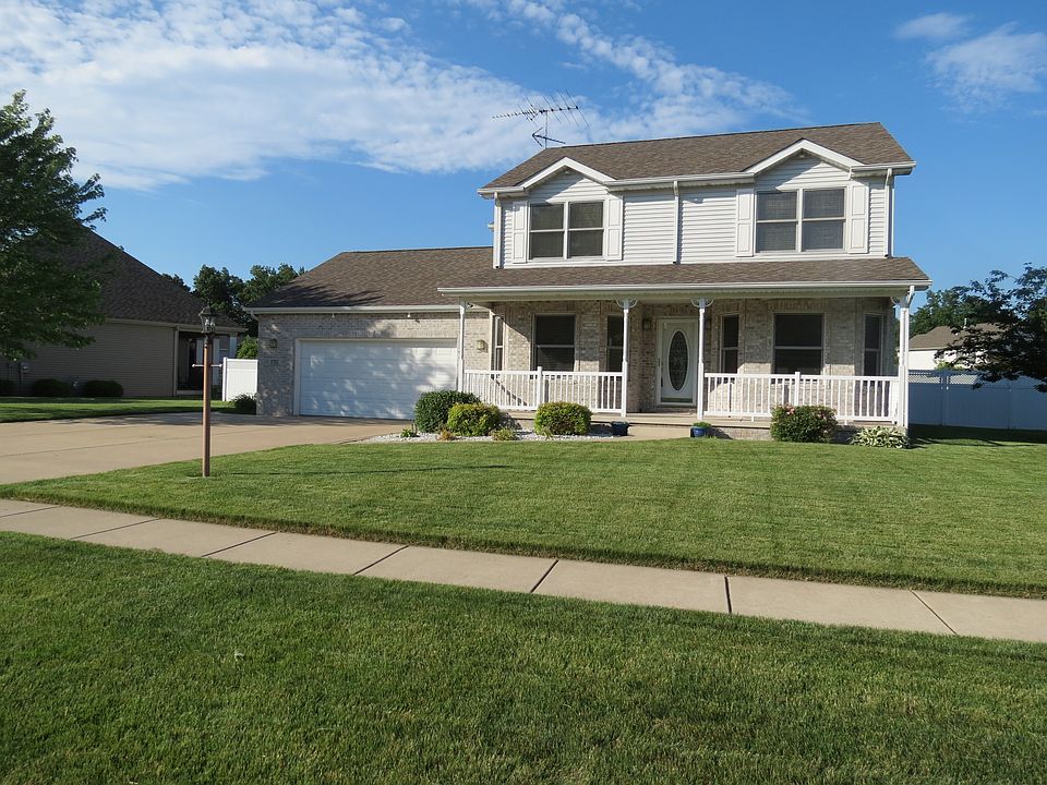 GREAT home/neighborhood for your growing family! 2 story 4 bdrm, 2 1/2 ba w/2x6 construction on largest lot (.4 acre) in pristine neighborhood! Bright & airy rooms, tiled foyer, oak staircase w/step lighting. Extra cabinets/plenty of counter space and an eat-in counter/nook, open kitchen. Direct vent remote control fireplace in living room,w/outside access to deck. Perfect main floor office space-wired Ethernet, phone, cable through out home. Oversized lite closets & ceiling fans in bdrms, master suite whirlpool & Heated flr. Convenient upstairs laundry. 2 plus deep car garage, 6 ft. fenced in yard. Marvin windows & doors, 50 gal power vent fast recovery water heater, high efficent furnace. Basement plumbing-future bath. Professional exterior lighting, video security, rear deck/concrete pad, patio block walk, garage Man door & outside storage bldg. Come & ck. it out