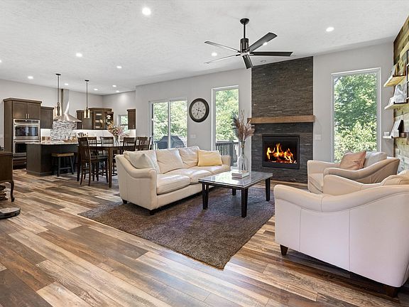 WOW! This RARE & nearly brand new walk-out ranch on a 0.32 acre wooded lot is exactly what you have been waiting for! Featuring nearly 3,000 finished square feet, this majestic floor plan was designed exquisitely and perfect for hosting your most incredible gatherings! The open concept on the main floor boasts the most gorgeous kitchen with quartz countertops, a huge primary bedroom with walk-in closet and shower, a walk-out deck to the serene wooded lot, and so much more! Make your way downstairs to the walk-out basement and enjoy the wet-bar, living area, and the other three oversized bedrooms. E-glass in every window, LED lighting throughout, high-end finishes in every area of the house, Armstrong LVP, gas fireplace, & an incredibly well thought out and beautifully created landscape!