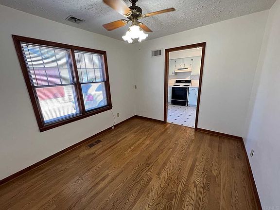 This immaculate, move in ready, well maintained home on Evansville's eastside is ready for it's new owner. As you step in the front door, you'll see a large living room with neutral carpet that is in great shape but underneath, there are hardwood floors. As you go to your left, is the entrance to the dining room with BEAUTIFUL hard wood flooring. The kitchen with plenty of cabinetry, is large enough perfect for a smaller table for added seating and it too has been freshly painted and newer flooring. WOW! Beautifully newly remodeled bathroom including the flooring, tub, vanity and mirror and fresh paint. Beautiful woodwork throughout this home and the doorknobs are the crystal original knobs. Some of the updates per seller are: Dishwasher 2022, garbage disposal 2022, high efficiency htg and air 2013, roof 2018. This home situated on a large lot is fully fenced and has a detached oversized 1 1/2 car garage that has extra space for storing a lawn mower and charcoal grill (which are both included). A home warranty through Home Trust 2-10 is being offered by sellers for your peace of mind.