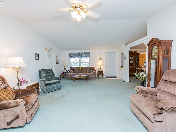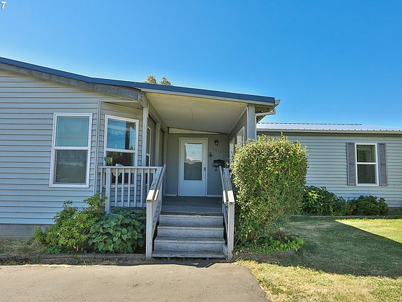 Almost an acre w/ a Mt. Adams view! Nice manufactured home w/ pod & attached 2 car garage/workshop/mower storage. Well manicured lawn w/ sprinkler risers to keep it green. Nice spacious floorplan, newer windows throughout for lots of light, open kitchen/nook w/eating and work island & pantry, formal dining room, living room slider to covered back porch where you'll get a seasonal view of Mt. Hood. Paved driveway for lots of parking.