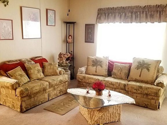 1989 2 BEDROOM, 2 BATH, FURNISHED MOBILE HOME LOCATED IN WONDERFUL FOXWOOD VILLAGE, A SENIOR COMMUNITY. 12OO SQUARE FEET PLUS 10 X 19' FLORIDA ROOM FOR MORE LIVING SPACE! Located In Foxwood Village, Nestled In Gently Rolling Hills. Beautiful Foxwood Village Is A 55+ Park (80/20). 2 Pets Under 40 Pounds Are Allowed, 20 Inches at Spine. Motorcycles And Rentals Are Allowed. Foxwood Is Located In North Lakeland Near Shopping And Restaurants. LOCAL LENDER AVAILABLE TO FINANCE THIS HOME. RATES AND TERMS DETERMINED AT THE TIME OF APPLICATION. CALL OR EMAIL FOR DETAILS AND PRE-APPROVAL PROCESS. LIVING ROOM 13.5 x 18.5' Large Double Window and Sliding Glass Doors Bring in the Sunshine to the Furnished Living Room. Sofa Sleeper with Matching Love Seat, Glass Coffee and End Table, Swivel/Rocker/Recliner and End Table. Ceiling Fan with Light. Carpet. Window Treatments. FLORIDA ROOM 10 x 19' Large 2nd Living Area. 3 Walls of Vinyl Windows and Furnished with a Sofa, Swivel Rocker, 2 End Tables, Stereo and Cabinet. Door to Front Yard. Carpet. KITCHEN/DINING ROOM 11 x 20.5' Roomy U-Shaped Kitchen, Open to the Dining Room with Breakfast Bar. Double Window Above Kitchen Sink for the Wonderful Florida Sunshine. Kenmore Side By Side Refrigerator, Whirlpool Range with Vent Hood, Kenmore Dishwasher, Cuisinart Microwave and Disposal. Abundant Cabinetry and Pantry. Breakfast Bar with 2 Stools. Ceiling Fan with Light. Vinyl Tile Floor. DINING ROOM Open to Kitchen and Living Room. Furnished with Table and 4 Matching Cushioned Chairs. Built-In China Cabinet. Chandelier. Laminate Wood Floor. MAIN BATHROOM 6 x 8' Extra Wide Corner Single Sink Vanity & 3 Tall Wall Mirrors with Vanity Light. Tub & Shower Combination. Linen Storage. Vinyl Floor. MASTER BEDROOM SUITE 25 x 13' Generous Master Suite! Wonderful Corner Bay Window! Furnished with a King Size Bed with Headboard and Matching Bedroom Suite: Bedside Chest, Triple Dresser with Mirror, Tall Chest of Drawers with Flat Screen TV. Round Table with 4 Chairs Sits Next to the Bay Window. Walk-In Closet Measuring 7 x 5'. Ceiling Fan with Light. Carpet. Window Treatments. MASTER BATH Extra Wide Corner Vanity with Make-up Area and Single Sink. 2 Wall Mirrors and Vanity Lights. Medicine Cabinet. Private Commode and Walk-In Shower with Glass Doors. Linen Storage. Vinyl Floor. GUEST BEDROOM 10 x 13' Furnished with White Wicker Furniture: 2 Twin Beds with Headboards, Bedside Shelving Unit, Small Chest of Drawers and Make-up Vanity with Bench. 4 x 5' Walk-In Closet. Carpet. Ceiling Fan with Light. Window Treatments. LAUNDRY ROOM 8 x 8' Whirlpool Washer & Admiral Dryer with Storage Cabinet and Shelving Above. Vinyl Floor. Door to Carport. STORAGE SHED 8 x 10' Workbench and Shelving. Plenty of Room for Storage. About the Park: Foxwood Village Offers A Full Calendar of Social Activities and Clubs for Residents. Amenities include a Large Social Hall with Kitchen, Heated Pool and Jacuzzi & Sauna! Laundry Facilities, Exchange Library, Secure Mailboxes, Fitness Room and Shuffleboard Courts. Outside Storage Area for RVs, Boats and Trailers (Subject to Availability) Close to Lakeland Square Mall & Cinemark Theatre with 18 Theatres, Entertainment, Restaurants, Churches, Doctors, Lakeland Hospital and Beautiful Downtown Lakeland located on Lake Mirror. Information stated in description of home and park is not guaranteed. Responsibility for obtaining current fees, rules & regulations associated with the community/park/home is the Buyer's responsibility. Home and Room sizes are approximate and not guaranteed.