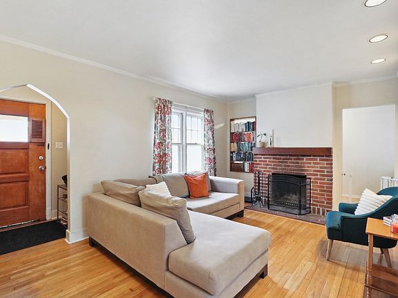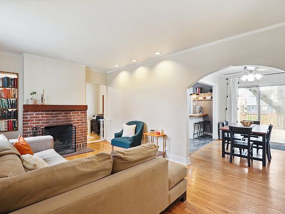 You will fall in love with this bungalow! A home full of sunshine and cheer! Gorgeous hardwood floors and original trim set off the period arched doorways of the classic layout. A dining room, open to the kitchen looks out onto the oversized deck and extra deep, fenced backyard. On cold winter nights, sit in the living room around the fireplace, or enjoy summer nights sitting under the mature trees. A bonus office off the living room makes for the perfect work-from-home space. The basement has had a perimeter waterproofing system and sump pump installed with a lifetime-of-structure transferable warranty. The basement floor has been epoxied to make it easy to use as a family room, work room, or finished to fit your needs. A full bath and a bedroom (bedroom does not have an egress window) are also located in the lower level. Home updates include basement waterproofing system (2022), new stairs to the basement, refinished kitchen cabinets, new washing machine (2022), new basement toilet (2023), and updates to plumbing and waste system.