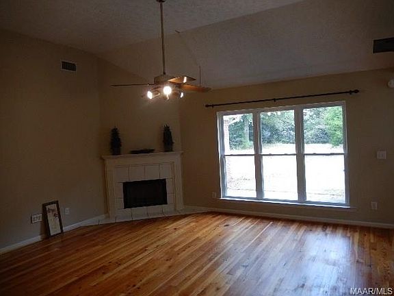Spacious wooded lot! Great room/living room with wood burning fireplace (never used). Lovely eat-in kitchen with breakfast bar and large dining area. This kitchen has beautiful cabinetry, pantry and stainless steel appliances. Laundry room with tankless water heater (propane) leads out to the 2-car garage. Spacious main bedroom and bath with garden tub and separate shower. Two additional spacious bedrooms with roomy closets. Yard is large and needs your special landscaping! Convenient to I-65, schools and Maxwell AFB. Click on the 'movie reel icon' to see a visual tour.