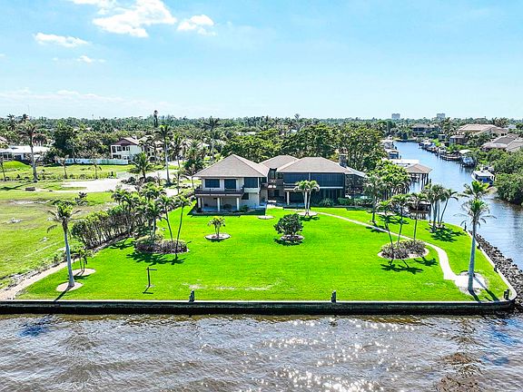 If you are looking for a peaceful haven to indulge in boating, gardening, hobbies that need plenty of space or simply seeking a place to relax and unwind, this is the perfect spot for you! A rare opportunity to own 1.25 Acres on the Caloosahatchee with 180+ feet of river frontage and 200+ feet on a canal. When you enter this estate property, you will be greeted by lush landscaping, majestic trees and pathways-a tranquil, nature sanctuary. The main living area has panoramic views of the river. A stone fireplace, built-in bookcases and gorgeous tongue and groove wood paneling add to the comfort of the living room. Entertaining family and friends is a breeze with many dining options, both inside and out, all enhanced by the beauty of the river. The primary bedroom is light and bright with sweeping water views and French doors that open to a private balcony. It is a spacious room with volume ceilings and a sitting area. The primary bath has dual sinks, a walk-in shower and a walk-in closet/dressing room. This well-planned primary wing also features its own elevator and the conveniently located laundry. All bedrooms are ensuite. The ground level boasts an additional family room, with a stone fireplace, that walks out to the pool and screened patio, a full bath, a flex room that can be used for guests or hobbies, and an elevator to the main living level. A covered dock with water, electricity, an additional boat lift and an oversized dock deck are located on the canal. The car enthusiast or hobbyist will love the seven garages, three of which are in a free standing garage, currently being used as a workshop. This exceptionally well-built home has storm protection on all openings and a Briggs and Stratton whole house generator. Cool off in your private pool or bask in a myriad of outdoor living areas where you can enjoy balmy breezes off the river and spectacular sunsets. This is an investment that your family will enjoy for decades!