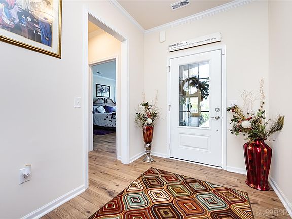 Nice 1.5 story home w/ side load garage & covered front porch. Step into wide foyer next to office(sitting or living room)14 x 11.5ft. Huge open family room(23 x 17.5ft) with gas fireplace. Gourmet kitchen w/ island, quartz countertops, beautiful tile backsplash, wine rack, electric cooktop, wall oven & built-in microwave. Bright dining area next to screened in patio(20 x 11.5 ft) for quit enjoyment. Huge primary suite(19.3 x 14.3ft) w/ box tray ceiling, walk-in closet, garden tub, luxury tile shower, & 2 sink vanity area. Secondary primary suite(16.5 x 13.3ft) has it's own bathroom as well, for possible in-law suite. Third small bedroom on main level as well. Upstairs is a huge 21 x 15.8ft. bonus room area. Extra attic space that buyer could later finish off or use for additional storage. Beautiful laminate wood floors through out main level except for the ceramic tile flooring in bathrooms & laundry. Enjoy community amenities(pool, playground, walking trails/side-walks, etc..