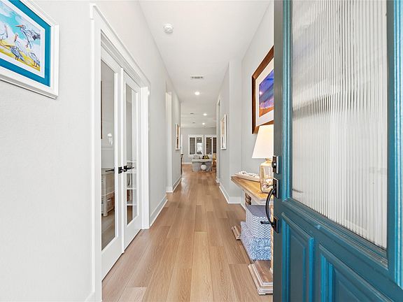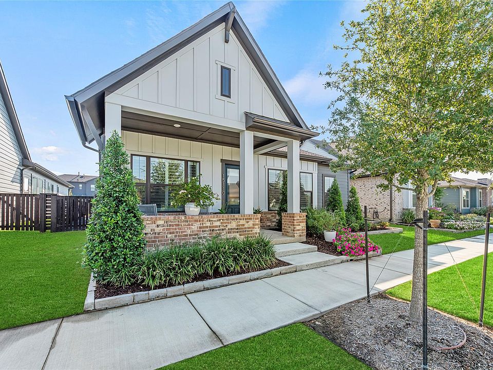 Stunning Bridgeland beauty w/sleek finishes & energy smart features creates a home designed for both comfort & epic entertaining. This 3/2.5/3 offers a private study w/French doors + flex/game room near the guest rooms, the perfect hub for late-night fun. Open floor plan flows easily w/LVP flooring, neutral paint, chic lighting & fans & plantation shutters throughout. Open to living & dining, a fully loaded island kitchen shines w/quartz countertops, rich wood cabinetry, designer backsplash & under-cab lights, a walk-in pantry & SS appliances. Posh primary suite offers a walk-in closet + a spa-inspired ensuite. Screened covered porch & a fenced yard w/blooming beds w/a full sprinkler system for easy care. Hidden features include attic fan, prog thermostat, Energy Star appliances, LED lighting, high-efficiency HVAC, Low-E windows, upgraded insulation, water softener & filter, shelving in garage & appliances stay. Not in flood zone. Steps from Adventure Park & close to schools.