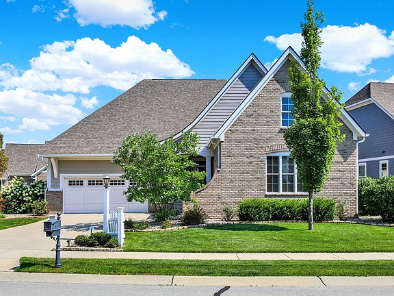 Experience luxury living in this stunning ranch-style home by Wedgewood Custom Builders, ideally situated in the prestigious Bridgewater Club. Boasting nearly 4,000 sq. ft. of finely crafted space, this home offers water views from the family room and dining area, creating a serene backdrop for everyday living. The open-concept layout showcases hardwood floors, raised ceilings, and a gourmet kitchen with a center island, breakfast bar, walk-in pantry, and built-in oven. The primary bedroom is conveniently located on the main floor, offering a spa-like ensuite with dual sinks and a walk-in closet. The finished basement features a spacious rec/play area, home theater, full bath, and a huge 27x15 space ready to be transformed into a 5th bedroom, gym, or game room. Notable upgrades include a whole-home tankless water heater, back-up sump pump, and an irrigation system. Relax on the covered patio with a gas fireplace, mounted TV, and peaceful pond views, perfect for morning coffee or evening gatherings. A 3rd car garage is ideal for your golf cart or hobby vehicle. Home has hookup for electric vehicle. Enjoy world-class amenities including golf, tennis, pool, clubhouse, fitness center, and walking trails. Located in the highly rated Westfield-Washington school district and minutes from shopping, dining, and major highways, this property offers unmatched comfort and convenience. Don't miss your chance to own this exceptional home in one of Carmel's most sought-after communities.