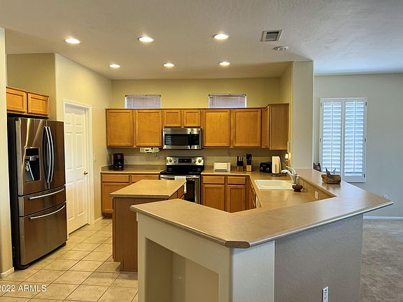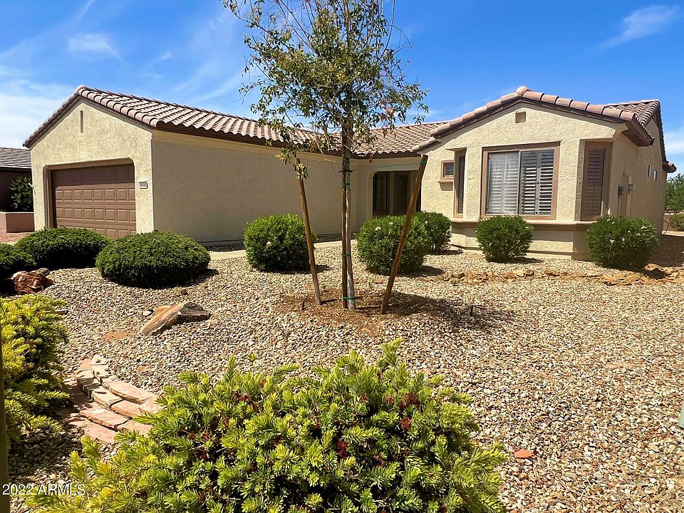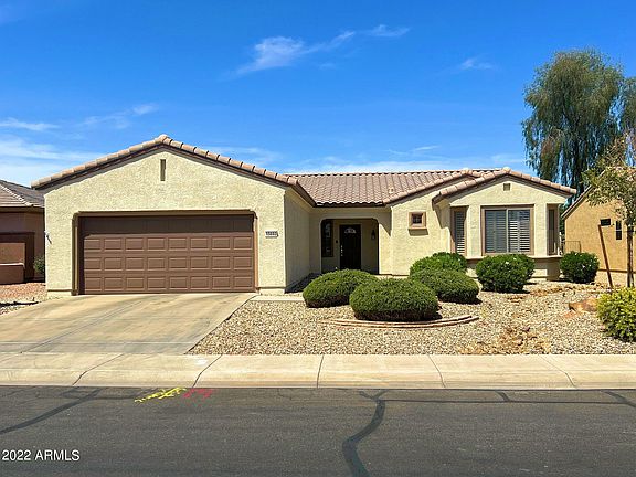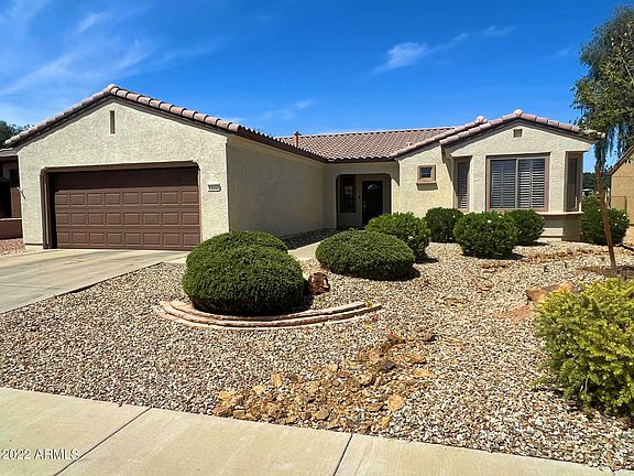 FURNISHED HOUSE WITH INTERIOR JUST PAINTED giving this house a brand new look and move in ready!! Immaculately maintain expanded Desert Rose. Front bedroom expanded by 6 feet creating a very large guest bedroom. Bay windows in both bedrooms. Stainless steel appliances. Expanded garage with shelving. Media center and plantation shutters in most rooms.