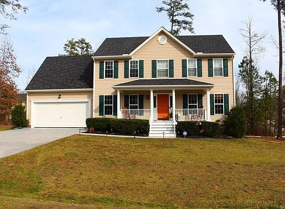 Like new transitional conveniently located close to the interstate for easy access to Fort Lee, Richmond or the Tri-Cities area. Why build when you can move into a like-new home right now!? Clean as a whistle with fresh paint, just power washed, carpets just cleaned, and new stain on the front porch and deck. The sellers upgraded the driveway to stamped concrete, added a concrete patio with fire pit off the deck, sidewalk lighting and auto garage door that can be operated from your smart phone! Huge corner lot with tons of privacy. Nice indoor space that allows for an open floor plan while still defining separate living spaces. Great for a family or entertaining! Huge master bedroom and attached master bath. Just in time for spring...light the grill, throw a log in the fire pit and relax on the patio with a cold adult beverage!
