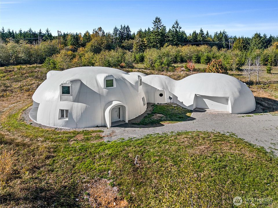 One-of-a-Kind Geodesic Dome Home on 19 Acres. This unique home offers unmatched strength, and architectural beauty. Features include dual-opening 4 car garage, brand-new Fisher & Paykel appliances, R-100 insulation, and a polyurethane on exterior ensuring the dome naturally regulates indoor temperatures, staying 60°–75° year-round without heat or AC. Interior boasts 3 beds + loft with 3 baths., plus expansive dome space for a recreation room, or office. Primary suite upstairs includes full bath, walk-in closet, and hidden bonus room. Additional highlights: advanced water filtration, digital well monitoring, abundant natural light, and resilient construction. A rare must-see combining privacy,& innovation and unmatched structural integrity.