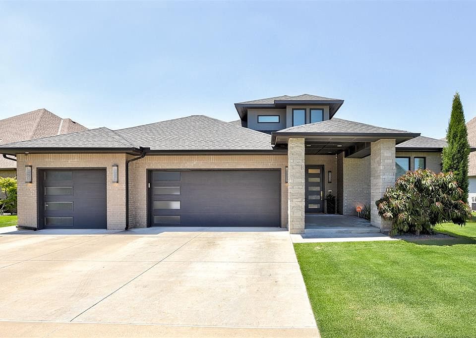 Beautiful one owner, custom home, built for entertaining with modern finishes. This home has 4 bedrooms, 3 FULL bathrooms and a half bath for guests. Functional kitchen w/ quartz countertops, large island w/ seating custom cabinets, wood flooring, walk in pantry, an ice maker & stainless steel appliances. This home boosts an open floor plan where the kitchen flows nicely to a dining space then into a spacious living room. This area includes amazing windows w/ electronic shades & wood flooring with a modern, gas insert fireplace. Several linen closes throughout the home for storage. Powder bath is right off the living room. Sliding glass doors lead to a covered, back patio w/electric shades, an outdoor kitchen/gas grill, prepping sink, mini fridge & gas firepit. Enjoy the views of the sparkling pool & stand alone hot tub that backs to beautiful greenbelt for added privacy. This area is full of large, mature Oak Trees. Fenced yard, fully irrigated with a beautifully maintained lawn. The main level of the home includes the primary bedroom w/ window shades and wood floors, 2 closets, where each has a small desk space. The larger of the two closets has walk through access to the laundry room. The primary bath has beautiful finishes that include quartz countertops, w/2 separate, floating vanities, tiled floors with a stand alone tub, and tiled shower. Two secondary beds are on the main level and share a bathroom & a functional flex space/bonus space. There are 2, gated areas under the stairs that were built as kennels for the pets. the second level of the home has the 4th bedroom with a huge walk in closet, full bathroom and has attic space for additional storage. Window coverings throughout the home. Three car garage with an in ground storm shelter. This home is near the neighborhood park too. The home is located minutes away from Mercy & Integris hospitals, HWY 74,the turnpike, Hefner parkway, an easy commute to the airport. Deer Creek Schools.