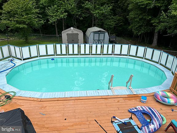 Welcome to this charming split foyer in a fabulous, peaceful, established community! Nestled on a stunning 1-acre lot, this home backs to 50+ acres of serene forest conservation property, offering privacy and natural beauty. With 1,624 finished square feet, this light-filled home features 3 spacious bedrooms and 2 full bathrooms. Enjoy two inviting family rooms, (one upstairs and one downstairs) perfect for relaxation or entertaining. Step out back to two expansive decks: a 12 x 12 deck off the back of the home and a 10 x 27 deck overlooking a huge 15 x 30 above-ground pool. The pool features a new pump and a new filter. Inside, you'll find brand new LVP flooring upstairs, a new water heater, and a new well pump. The huge oversized detached 2-car garage is custom-built by Amish craftsmen and adds even more appeal, along with two sheds for additional storage. No HOA to worry about—just peace and privacy! Don’t miss this incredible opportunity to own a home in a tranquil, nature-filled setting.