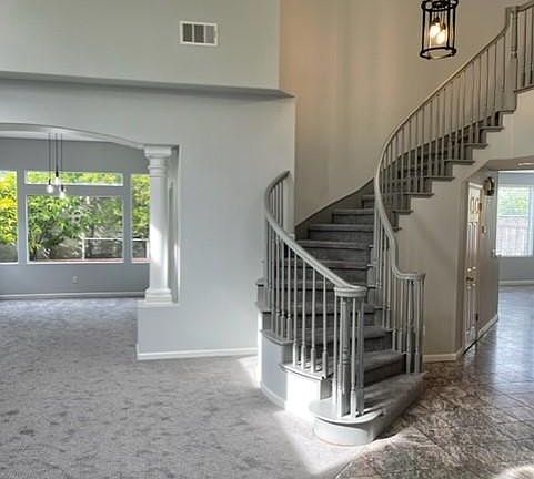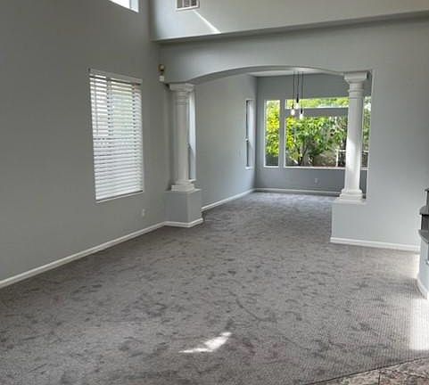 Freshly updated top to bottom, this open floor plan is functional and sizable. At nearly 3000 square feet, it features a two story entry and living room, main level bedroom with adjoining full bath, all new kitchen appliances, all new lighting, new carpeting, freshly painted throughout, 3 car garage, laundry room and a massive primary suite that spans the entire length of the house. The primary has enormous sitting area with fireplace and ceiling fan, soaring cathedral ceilings, and a dual door entry spa like bath with deep jetted tub, oversized walk in shower, 10 foot double sink vanity and two closets. Upper level also has a Jr. En Suite bedroom with private bath and walk in closets, two additional large bedrooms with shared double sink vanity bathroom. Family room has fireplace, ceiling fan and sliding door to large, very private fenced in back yard. Very large eat in kitchen with privacy door to formal dining room, abundant cabinet and counter space, walk-in pantry, new appliances. Landlord pays for sewer, garbage and landscaping Tenant pays remaining utilities. Must have proof of Renters Insurance. All repairs $250.00 or less are tenant responsibility. No Smoking, No pets. $45.00 application fee for reports. Minimum 1 year lease, potential reduction in rent for longer term.