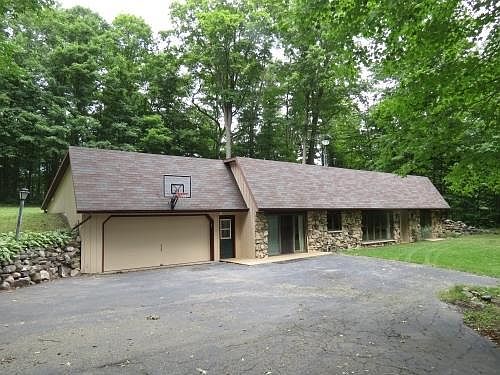 Nestled in the woods on over 5 acres! This spacious, energy efficient earth home offers 3 bedrooms, 2 full baths and 2.5 car attached garage. Beautiful California drift stone & cedar exterior, skylights and 2 sets of patio doors lead to the scenic yard! Wood burning stove and 12 x 16 storage shed included. Spacious laundry / mud room. All appliances included!