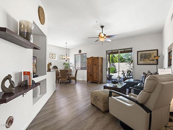 This 3 bedroom, 2 bath, single level home is located in an awesome Scottsdale community tucked away from any busy roads, yet close enough to all the shopping and activity you could want. Very nice and many upgrades including kitchen Quartz counter tops, upgraded cabinets and appliances, Flooring in main part of house consists of waterproof Luxury Vinyl Planks, (LVP), Wood tile style flooring in bedrooms ,Spacious great room with high vaulted ceilings and open space. Eat in kitchen, Basckyard offers sparkling private pool, covered patio, privacy. Quiet street and neighborhood. Excellent Scottsdale School District.A must see!
